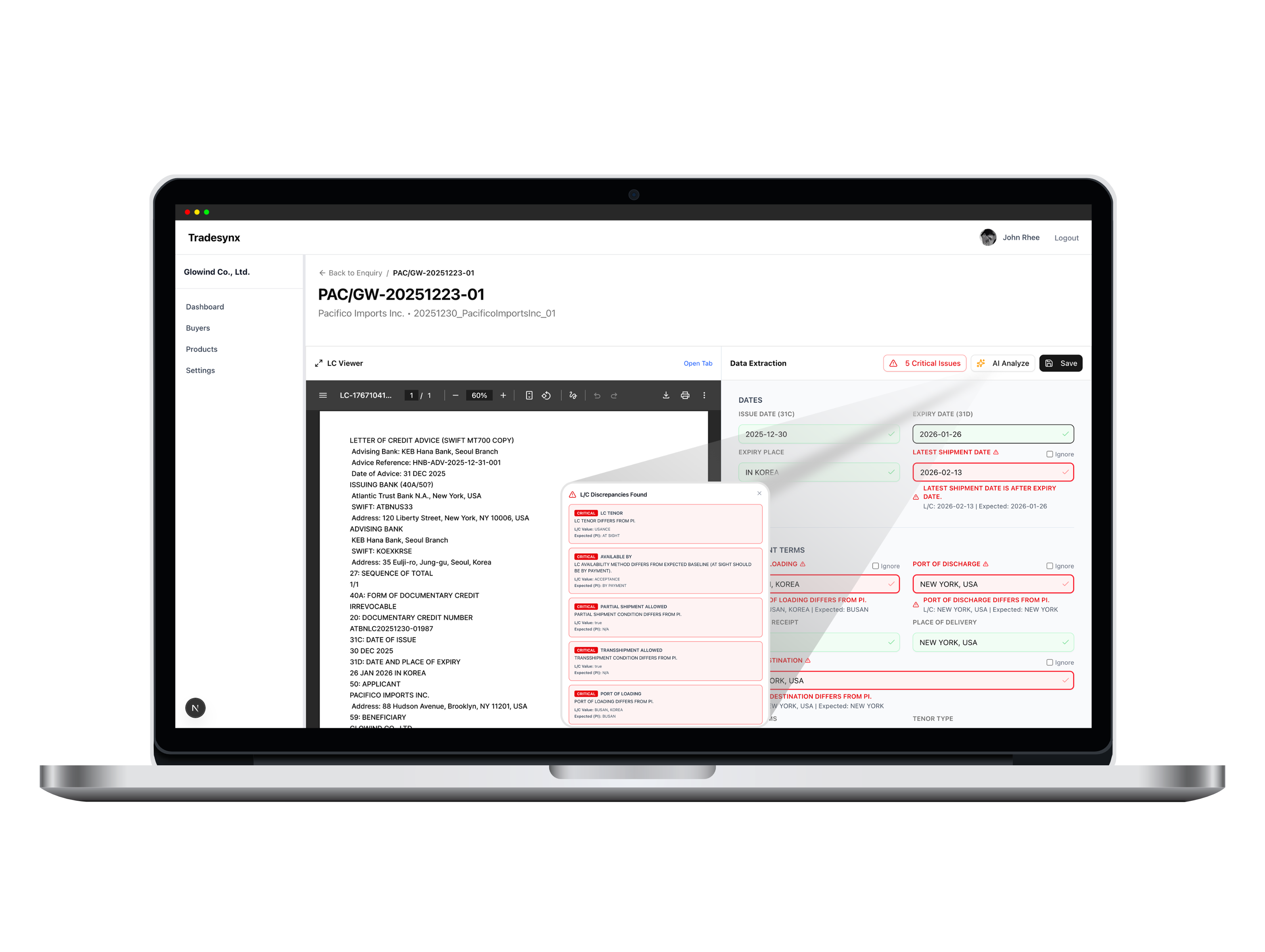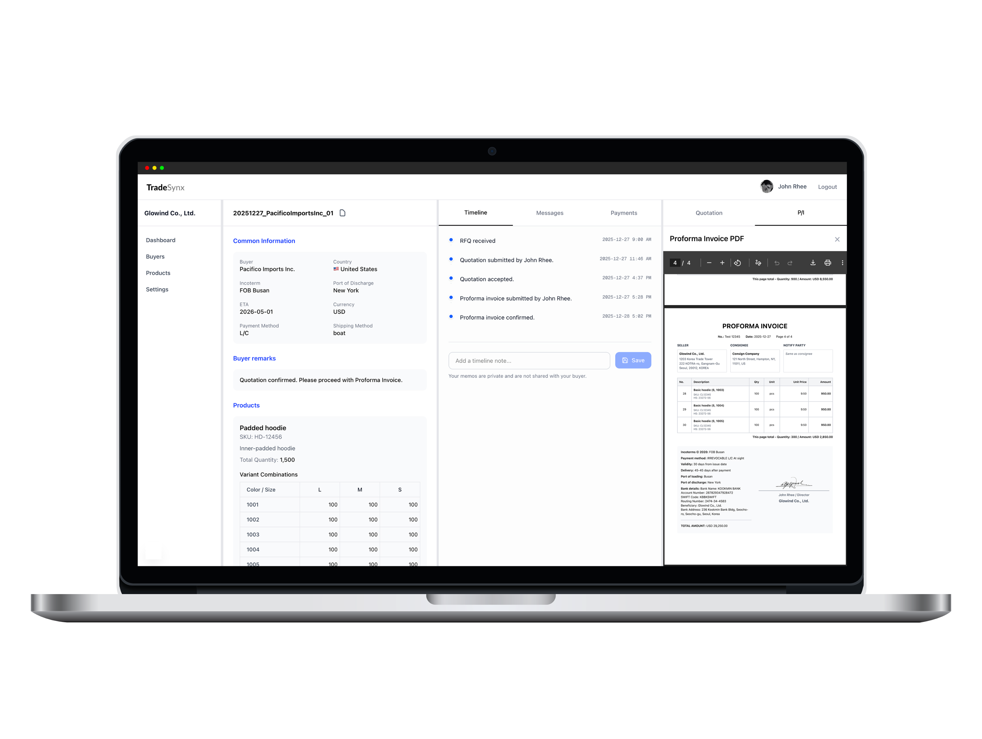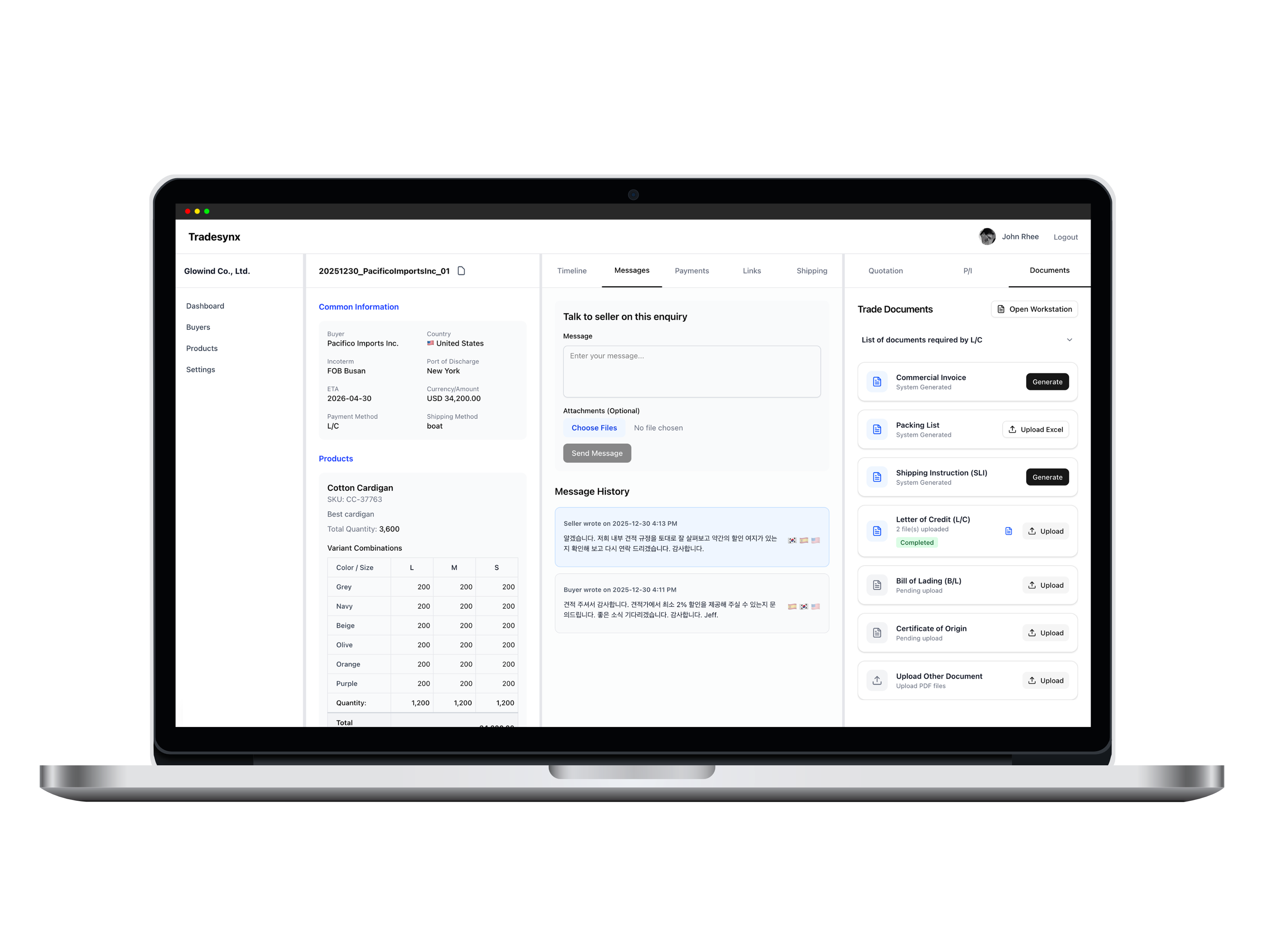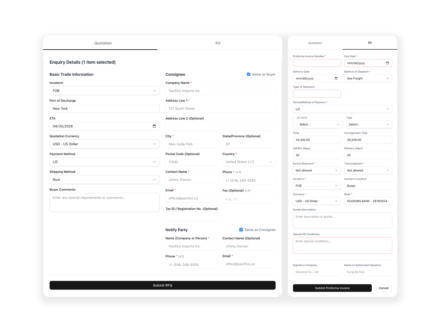 A trade transaction begins with an enquiry and ends with shipment documents or negotiation. While others focus on automating individual tasks, TradeSynx took a different approach β we focused on the flow of data itself. No matter where you enter data in the workflow, the system automatically syncs related fields and validates consistency in real time. TradeSynx is not just another automation tool. From buyer registration and quotations, to P/I, forwarder coordination, and L/C negotiation β everything is managed as one continuous flow. Now, remembering and managing work is no longer a human responsibility. It's the system's job.